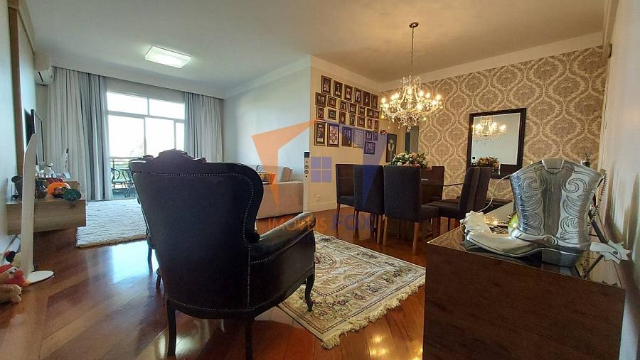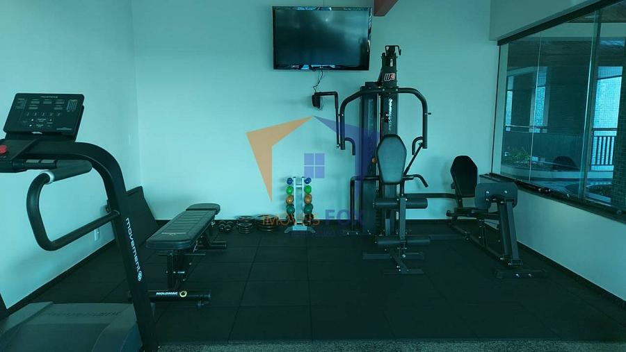 com armários, 02 dormitórios com ar-condicionados, banheiro social com hidro, sala com 03 ambientes climatizada com lavabo e sacada,