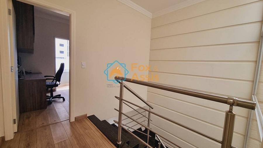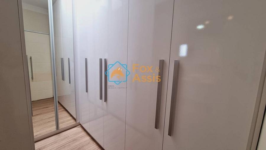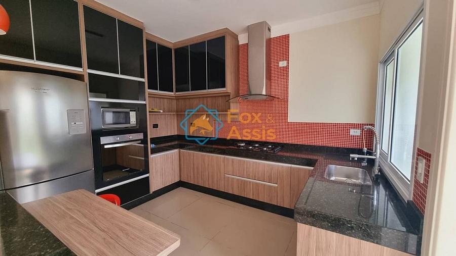 gabinete planejado com pia, 02 vagas de garagem, possui sistema de alarmes, cerca elétrica e portão eletrônico.