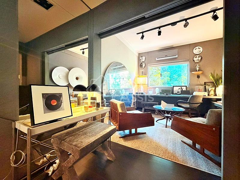 Com ambientes amplos e bem distribuídos, conta com hall de entrada, sala de reunião, lavabo e uma aconchegante sala com lareira. Possui ainda escritório home office, sala de jantar e cozinha totalmente planejada.