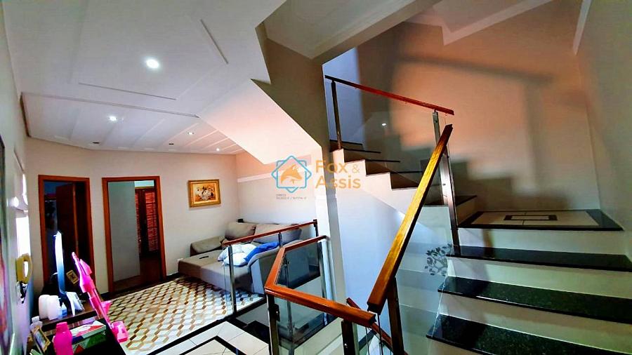Lindo Sobrado no Bairro Nova Carioba em Americana- SP, com 03 dormitórios, sendo 01 suíte master com closet e banheira, todos os quartos com sacada, 03 banheiros e um lavabo, sala com adega, cozinha integrada com a área gourmet, escritório, brinquedoteca, armários planejados, ar condicionados, sala de vídeo, dispensa, garagem para 03 carros.