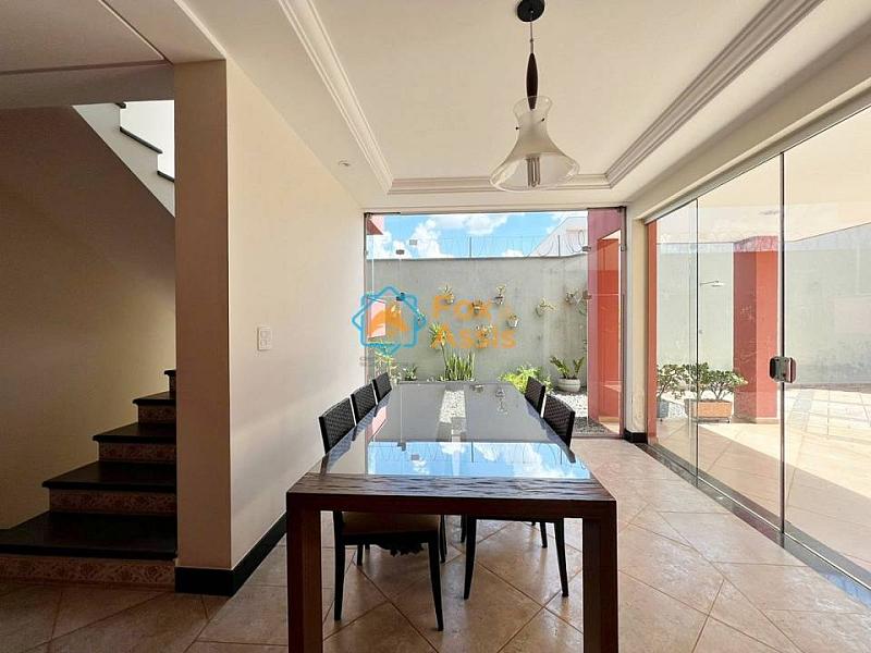 2º Pavimento Inferior - Sala de estar, sala de jantar com sacada na frente, lavabo, cozinha ampla, despensa, piso porcelanato, área de serviço.
