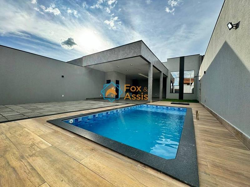 Lindo imóvel com fino acabamento, sala 2 ambientes com pé direto alto integrada a cozinha com ilha, 3 dormitórios sendo 1 suíte com closet, 1 banheiro social, área de lazer com pia e churrasqueira, com vista para uma linda piscina.