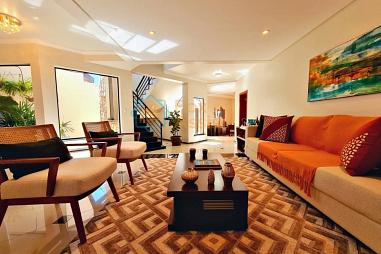Sobrado de fino acabamento, rico em detalhes, piso térreo.