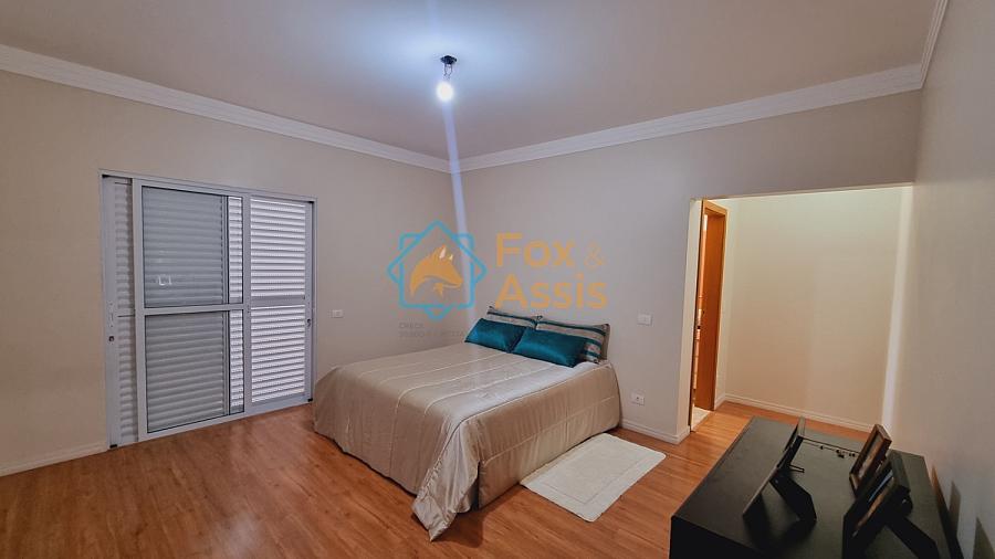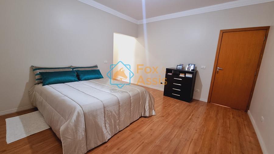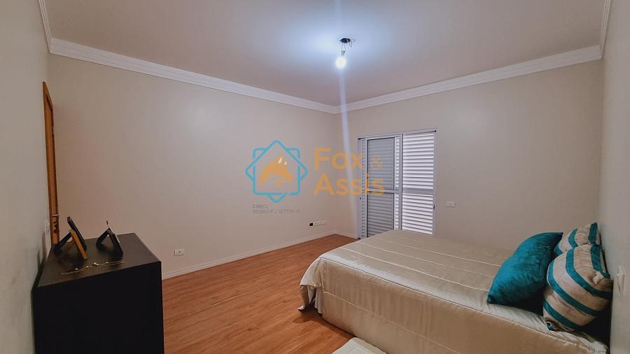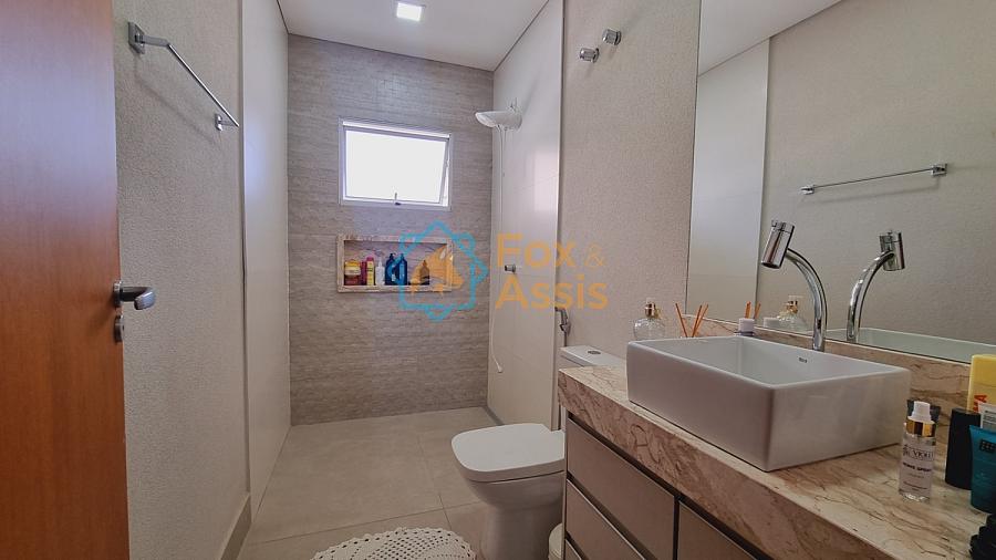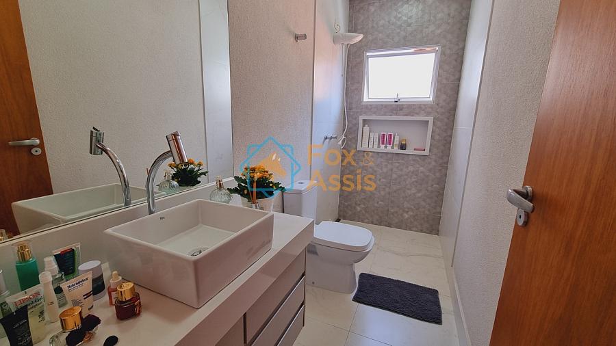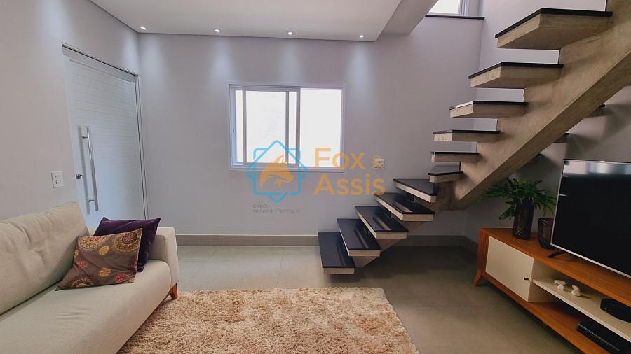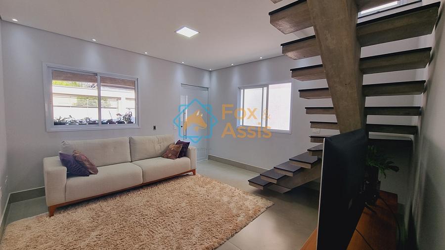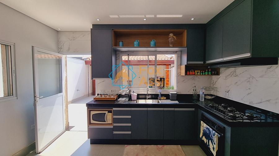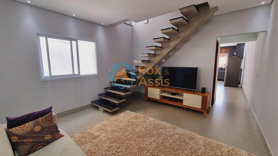 Sobrado de fino acabamento, sendo piso térreo, sala de tv, rebaixo de gesso, 01 lavabo, cozinha planejada, integrada à sala de jantar, fundos área de churrasqueira, 01 lavanderia, 03 vagas.