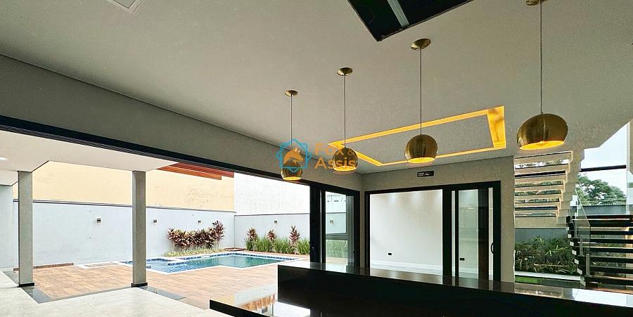 Sobrado em estilo contemporâneo com ambientes amplos e integrados, combina conforto, elegância e sofisticação.