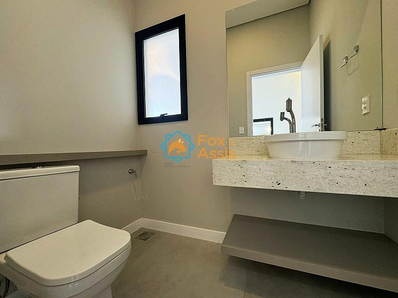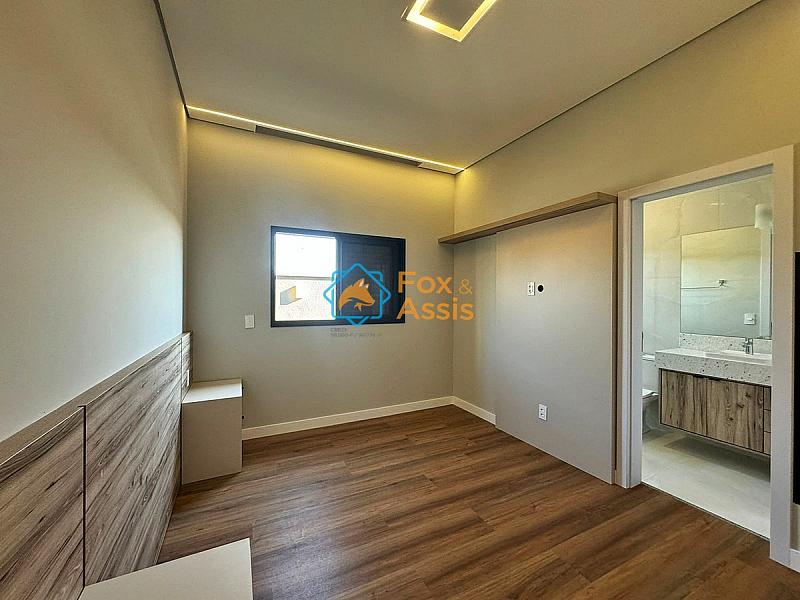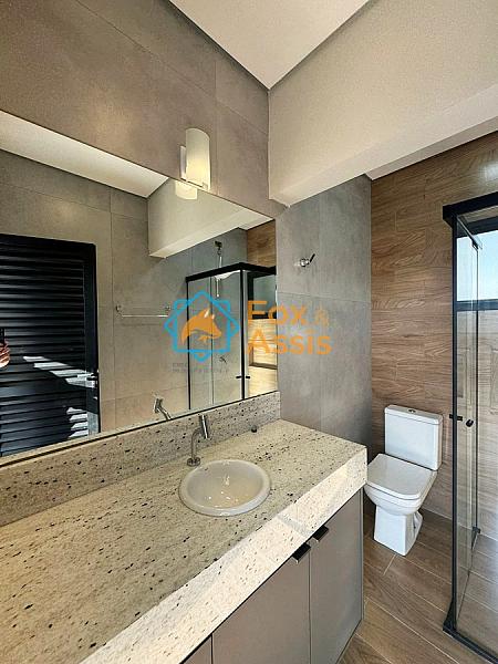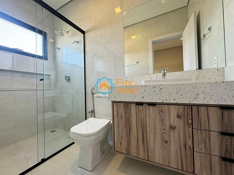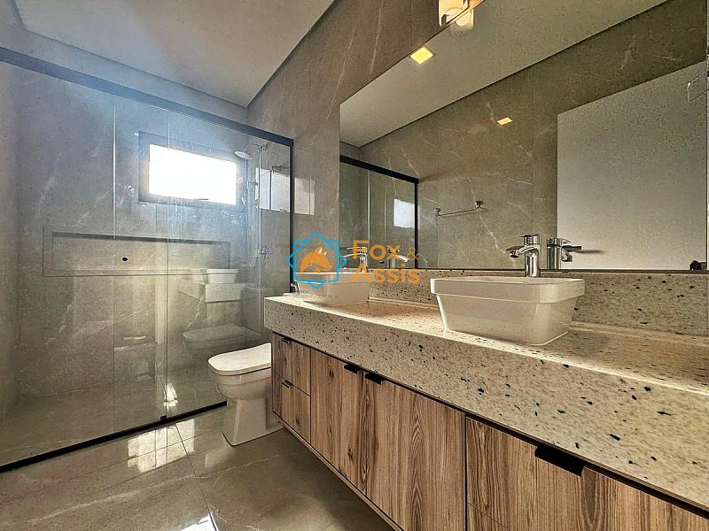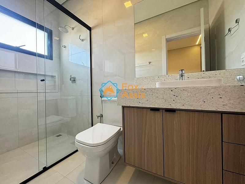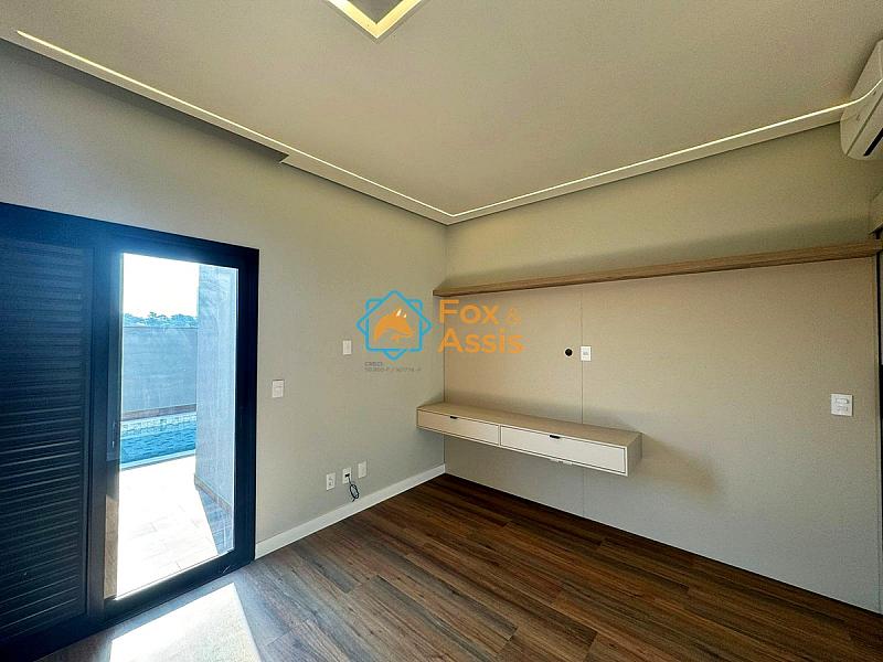 Imóvel com arquitetura moderna e fino acabamento possui 03 suítes climatizadas, sendo a principal com closet.