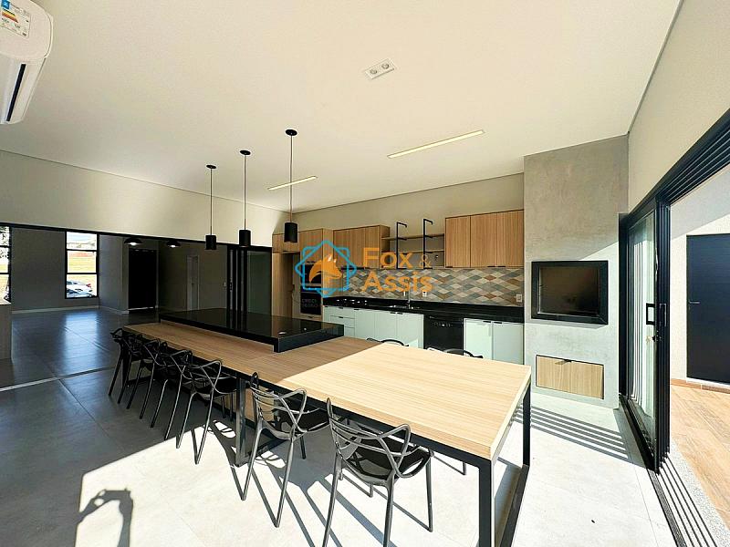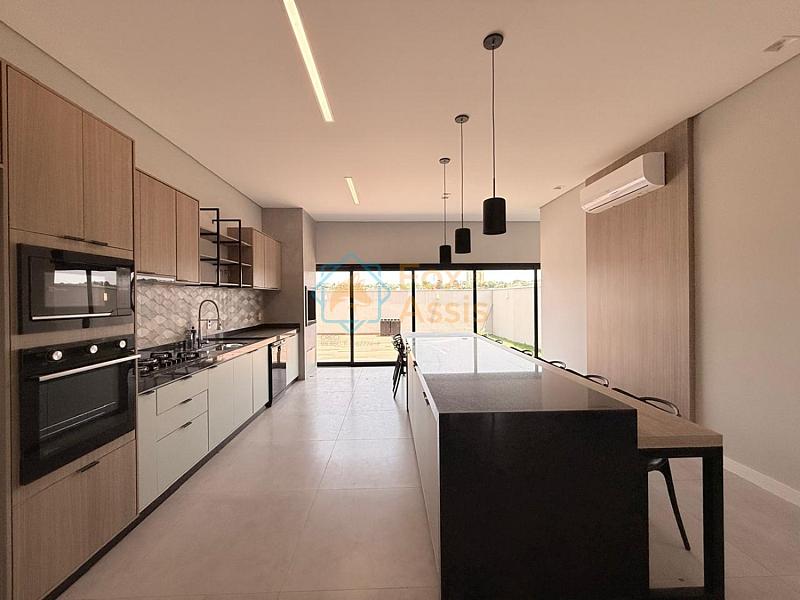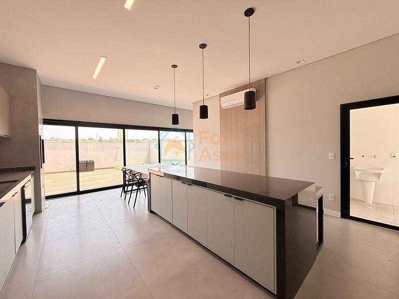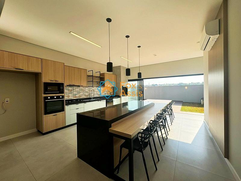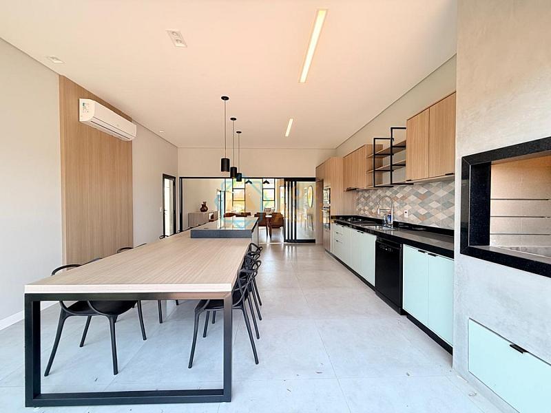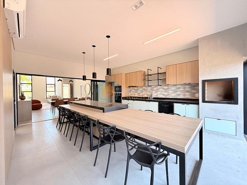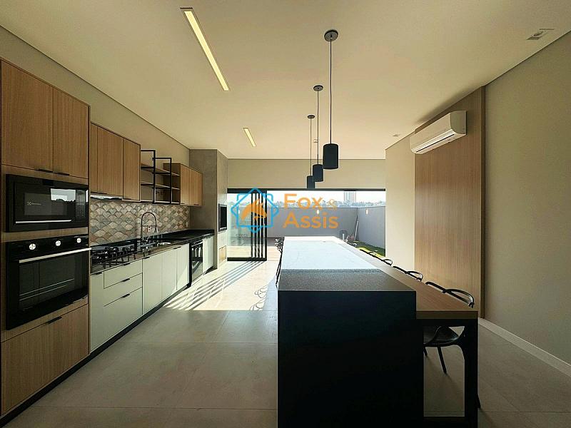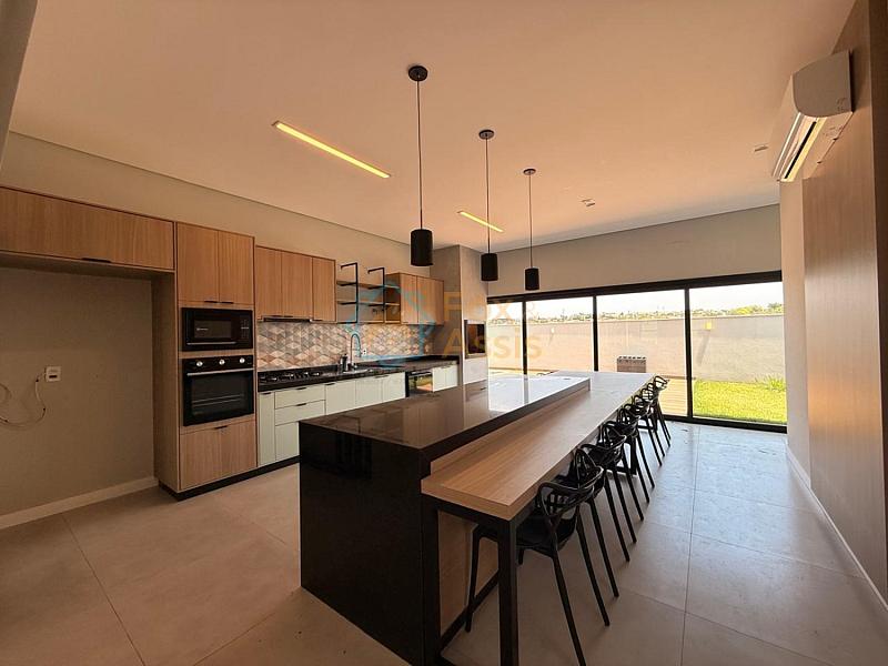 Cozinha gourmet ampla em padrão americano com ilha, completa com cooktop, forno, microondas e churrasqueira.