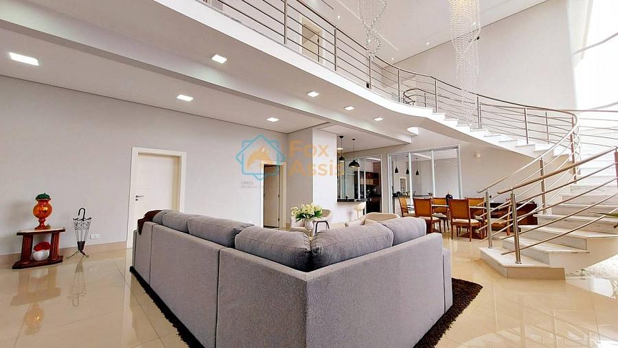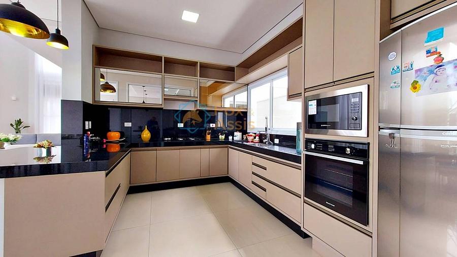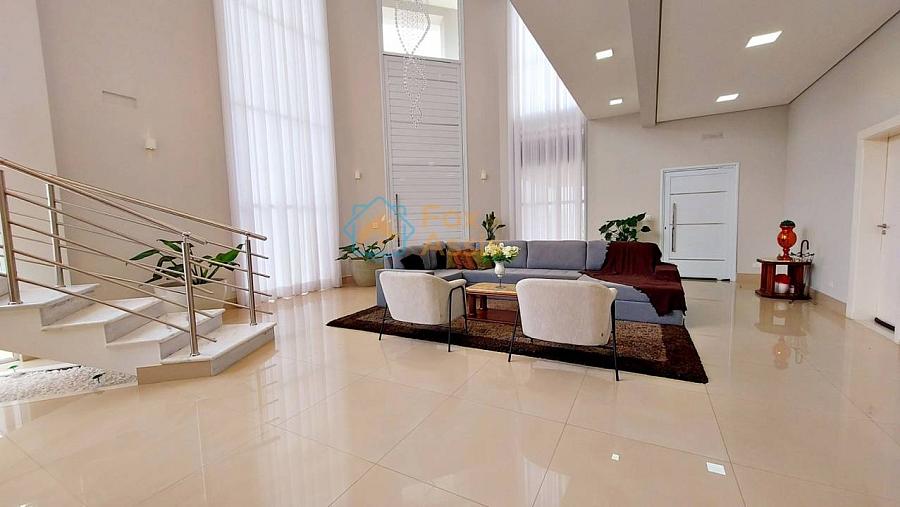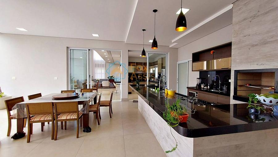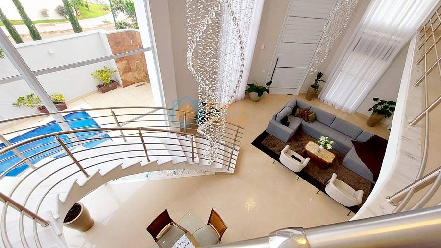 Maravilhosa Casa em Condomínio Fechado, piso térreo há integração completa entre living para até três ambientes e a cozinha, com um pé direito duplo de quase sete metros com vista para o mezanino e muito vidro que deixa essa casa com uma maravilhosa iluminação natural e com vista para a piscina. Ela conta ainda com o home e lavado. A área gourmet oferece muito espaço livre e a piscina aquecida.