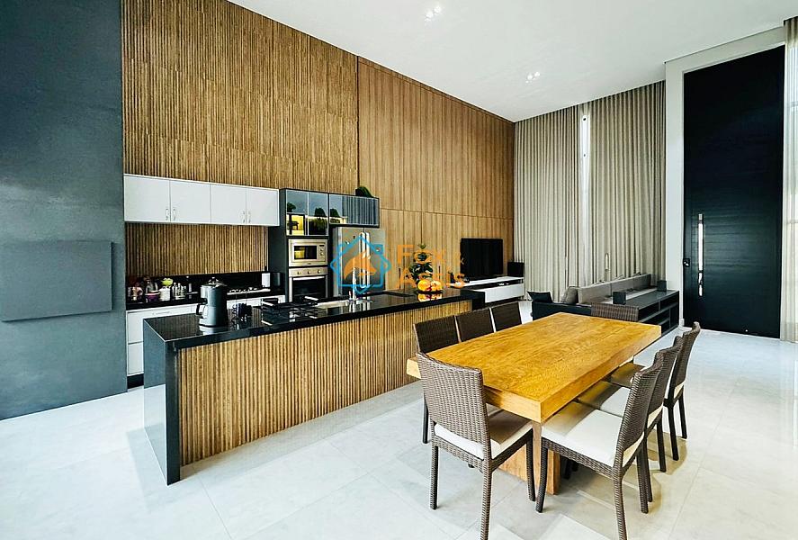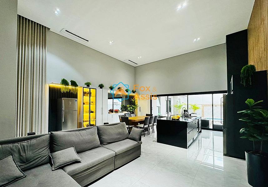 Imóvel com fino acabamento, completo em marcenaria com 03 suítes sendo a principal com closet, cliamatizada, sala 02 ambientes com pé direito duplo climatizada, integrada a cozinha com churrasqueira e vista para piscina aquecida com cascata, área externa ampla para curtir bons momentos em família.