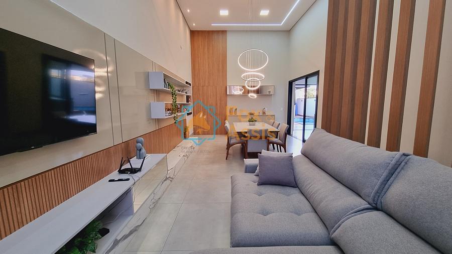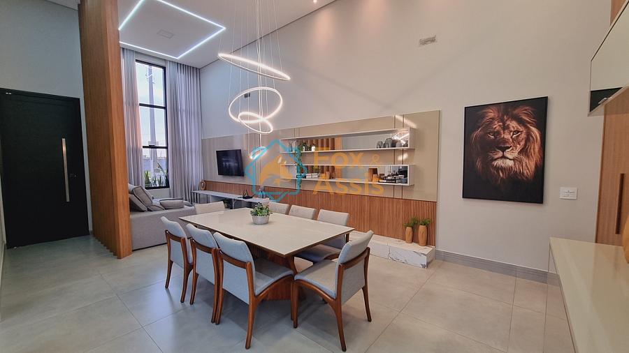 Casa com projeto funcional, 03 dormitórios sendo 01 suíte do casal com closet e climatizada, 01 demi-suíte, sala em 02 ambientes integrados, pé direito duplo, 01 lavabo, cozinha gourmet planejada e churrasqueira, 01 piscina, 01 lavabo, foto voltaica, preparação para ar condicionado e aquecimento solar, 02 vagas cobertas.