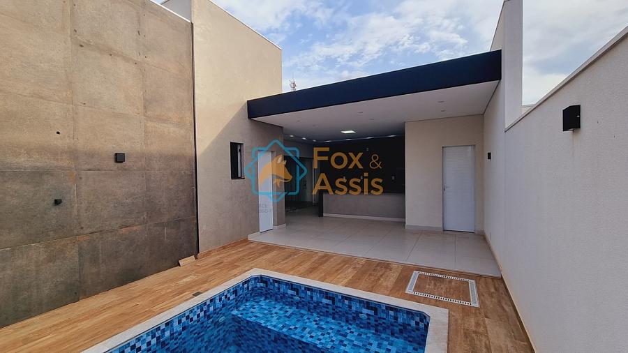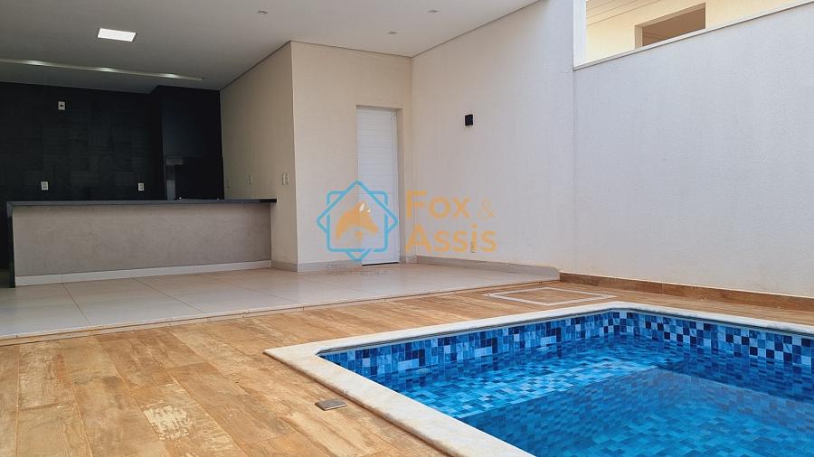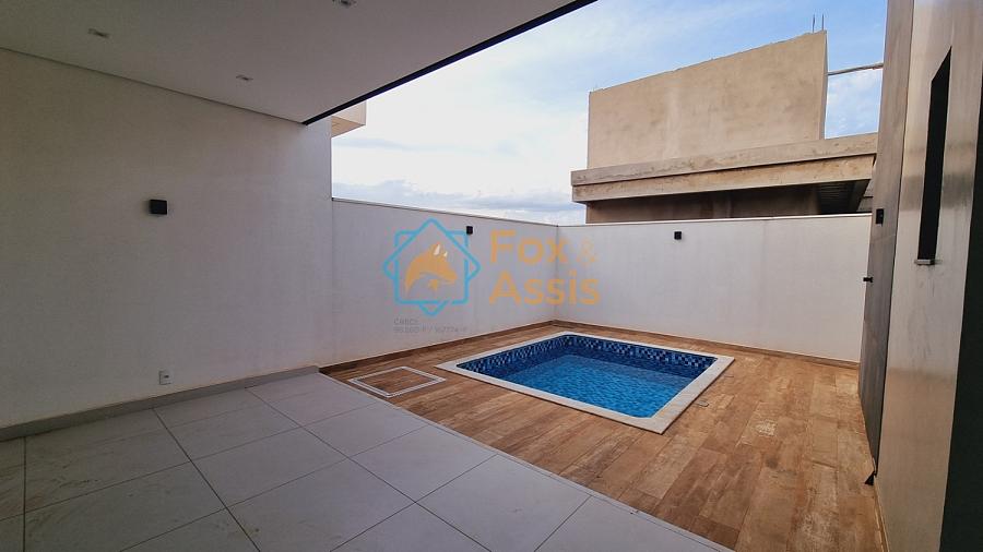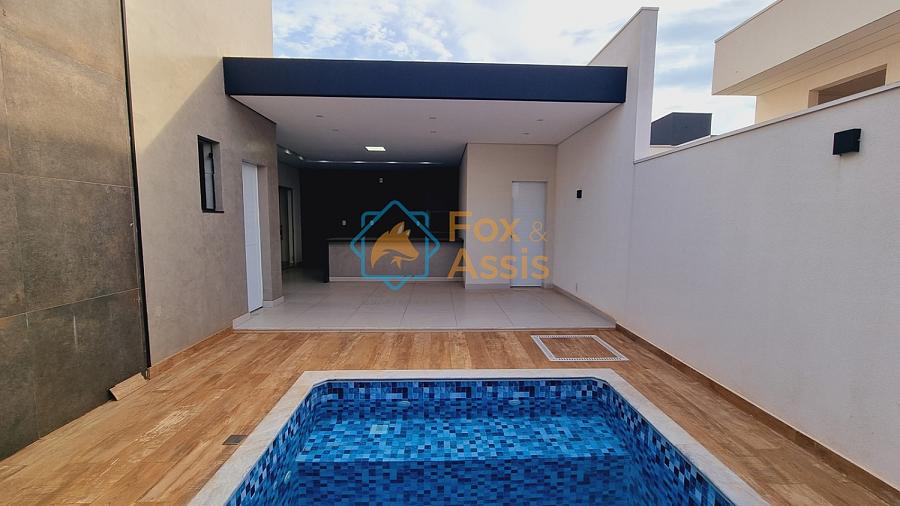 Casa nova, projeto da fachada em linhas retas, 03 dormitórios sendo 02 suíte,  01 banheiro social, sala em 02 ambientes integrados, cozinha em ilha, área gourmet churrasqueira e piscina, 01 lavanderia, 01 banheiro, preparação para ar condicionado, 02 vagas.  Condominio oferece, 24 hs, playground, quadra de tênis, mini campo, 01 salão de festa. Vale a pena conferir!