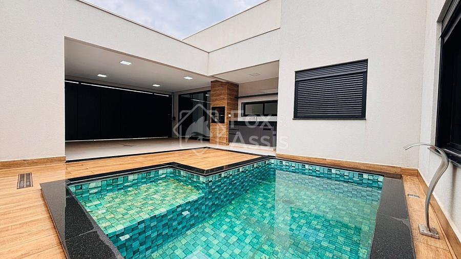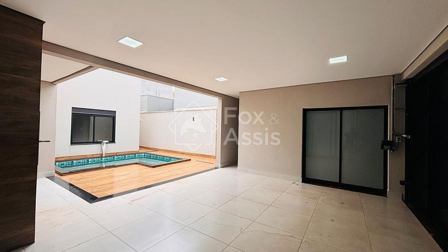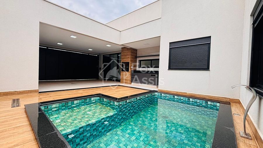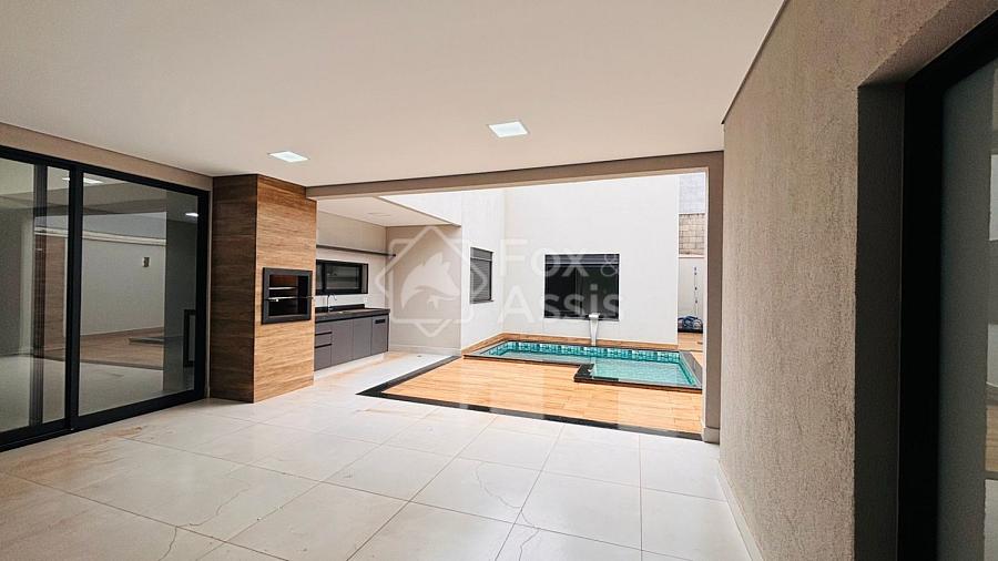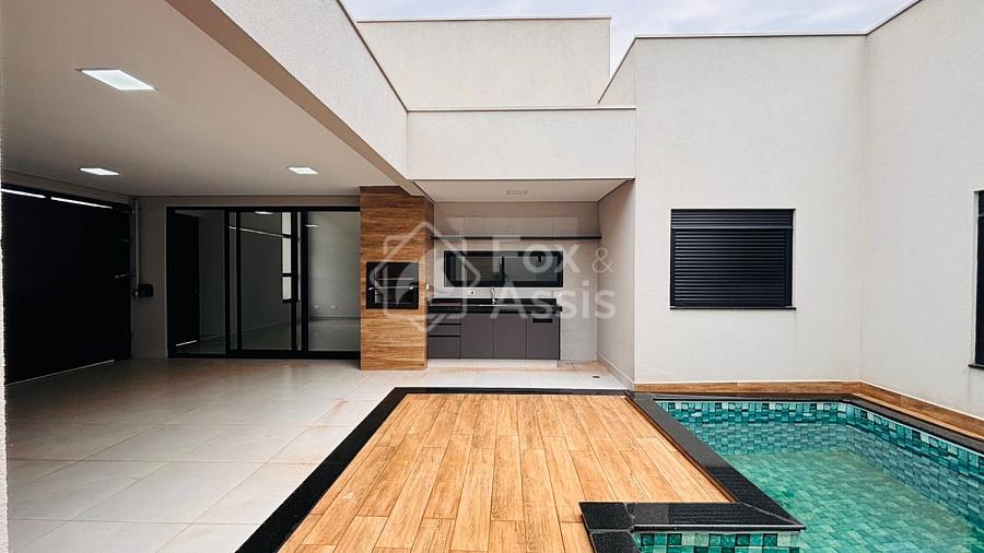 São 3 quartos (1 suíte), sala com pé-direito duplo, cozinha planejada, e área gourmet completa com piscina e churrasqueira.