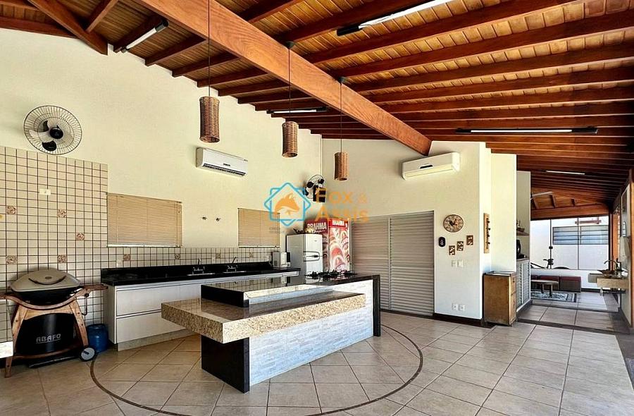 Os elementos em madeira estão presente em todo imóvel que possui 446 m² construção, living integrado a sala de jantar, sala de Tv climatizada, 03 dormitórios sendo 01 suíte completos em marcenaria, banheiro social, cozinha e lavanderia.