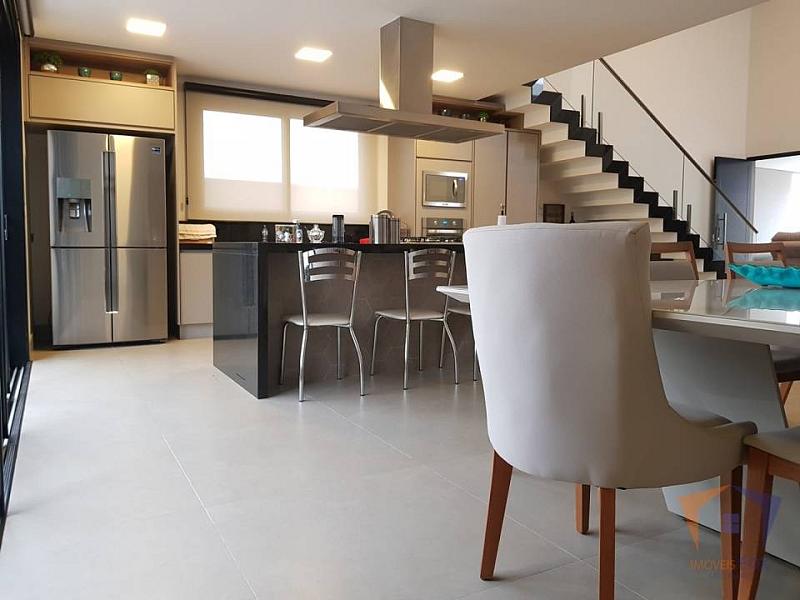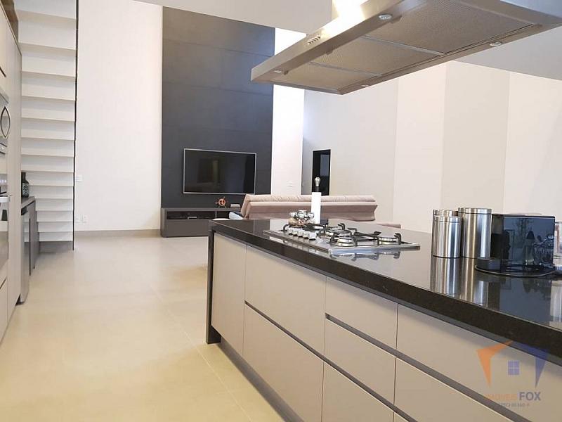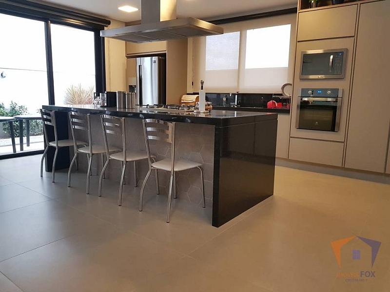 com pé-direito de 8m², cozinha com ilha inteira de armários,