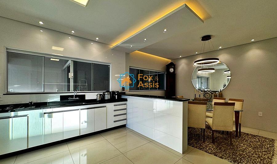 Piso térreo com amplo living, 01 lavabo, sala de jantar integrada a cozinha completa em armários com acesso para um amplo e lindo espaço gourmet com churrasqueira e pia de apoio.