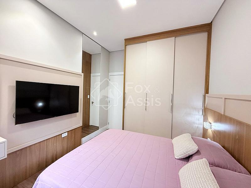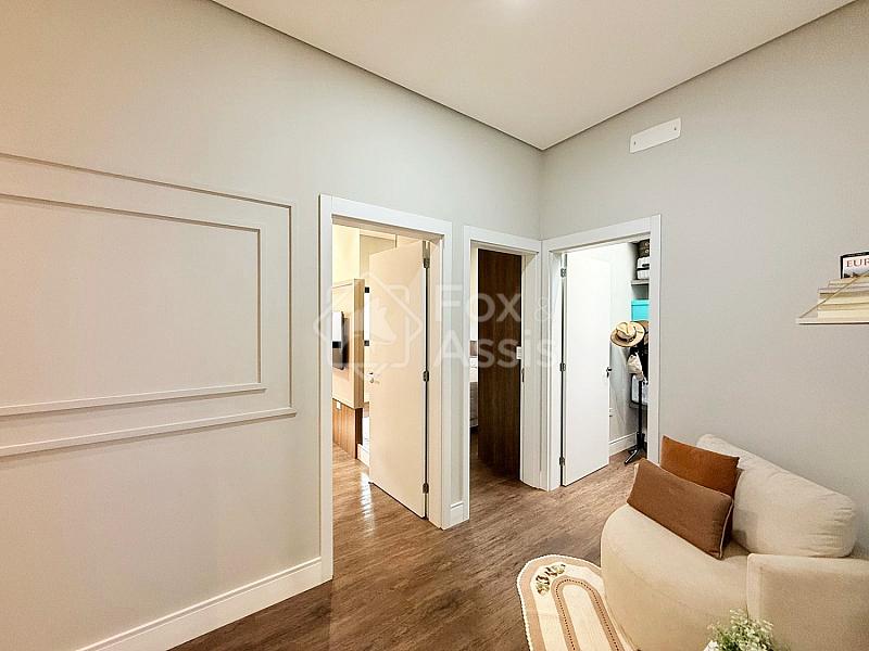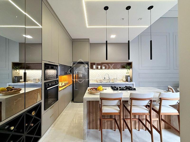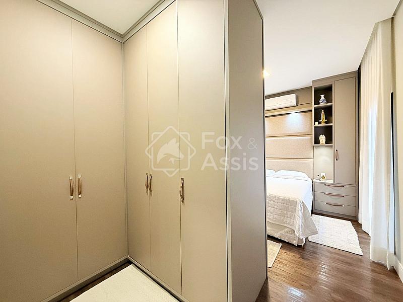 São 3 dormitórios climatizados, sendo 1 suíte master com closet, sala ampla com pé-direito alto e integração total com a cozinha planejada.